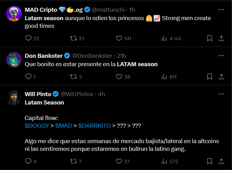 Lo interesante es que en las últimas semanas, la comunidad latina (específicamente la mexicana), empezaron a lanzar tokens como $DOGGY, $MAD y $DARRKITO en esta plataforma y mucha gente empezó a hacer varios miles o cientos de miles de dólares con estas monedas latinas.